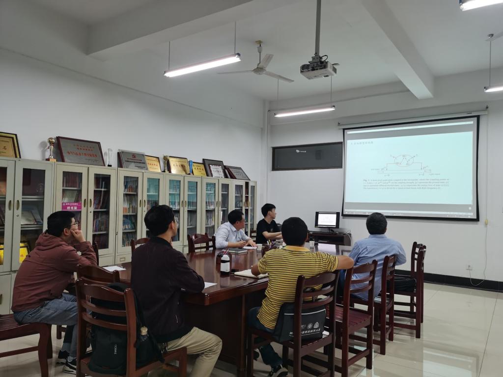 量子物理与控制理论等研究方向的师生团队进行了多场交流。师生就量子控制理论相关研究方向、量子控制领域的一些具体问题以及团队发展等向张教授进行详细咨询,并就相关系统中量子纠缠特性、光子散射特性及其调控、以及量子逻辑门等量子器件设计展开了深入的探讨。