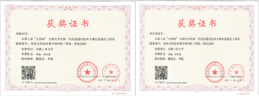 近日,第十届“大唐杯”全国大学生新一代信息通信技术大赛圆满落幕,我校共组建7支队伍参加比赛,其中周胤和仲启童同学组队(指导教师戴慧洁和李聪)在省赛中脱颖而出,最终以优异的成绩获得全国总决赛本科B组三等奖,同时海角社区