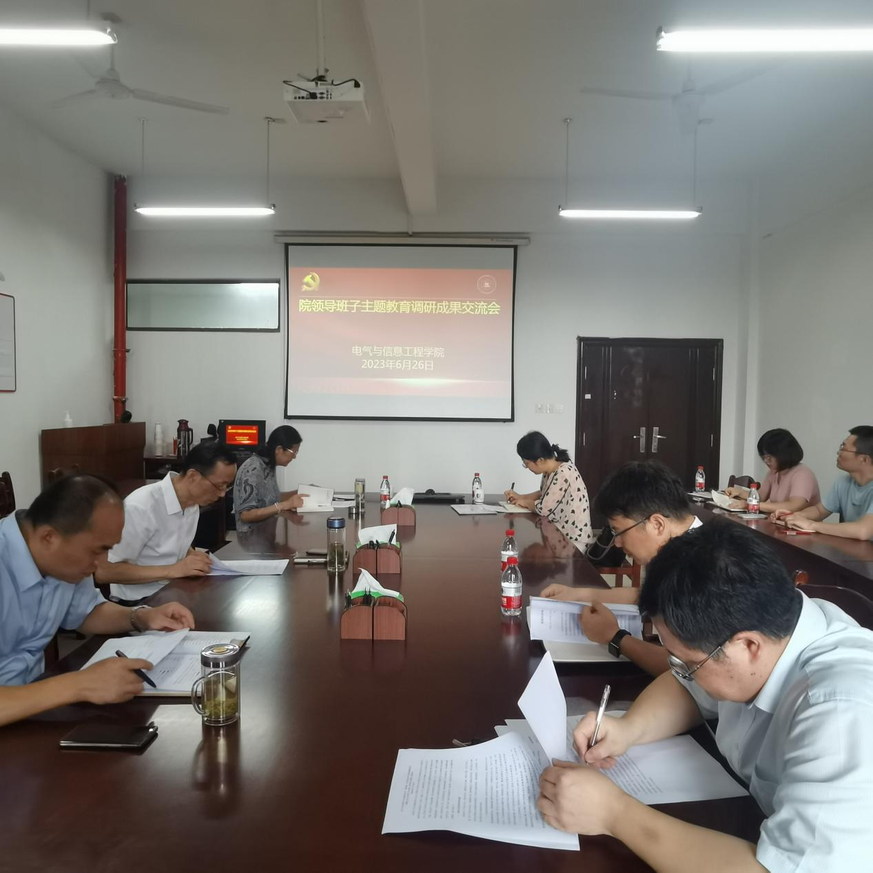党委在电气楼304会议室召开主题教育调研成果交流会,校主题教育第六督导组组长李凤霞、成员惠斌到会指导,院党委书记丁忠利主持会议,院领导班子成员、系室中心主任和党支部书记代表参加会议。