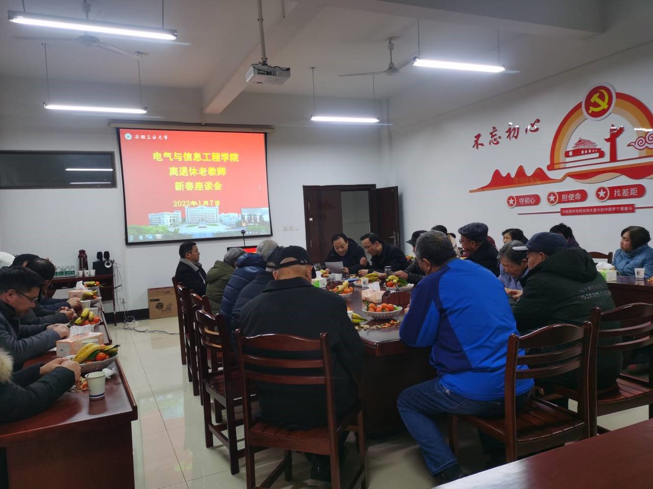 会议室举办了一场温馨的茶话会,特邀请退休教师们回“家”看看。共同忆往昔岁月,看今朝风华,畅谈未来发展,20余名在校退休老师、海角社区
