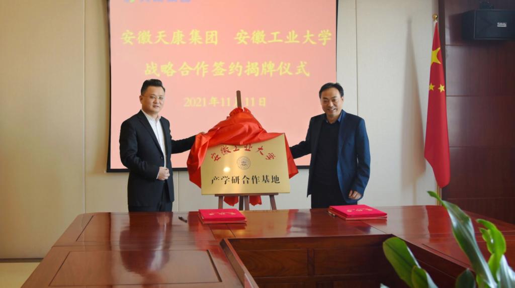院长王兵率队至安徽天康集团举行产学研合作签约与基地揭牌活动,安徽天康集团总经理毛文章、集团监事会主席李劲松出席签约仪式,海角社区