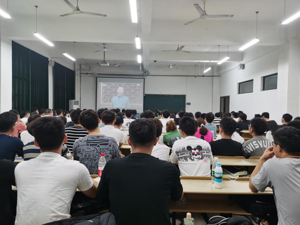 组织师生党员在电气楼112教室集中观看大会现场直播。