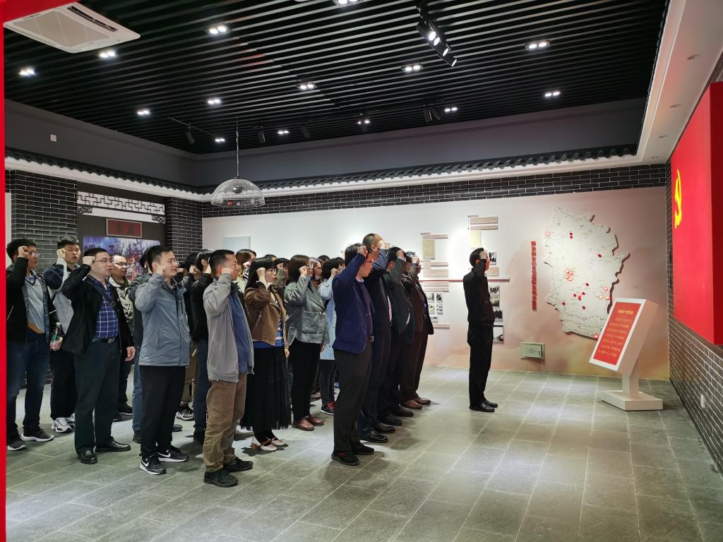 党委书记丁忠利的带领下,面对鲜红的党旗,高举右手庄严宣誓,重温入党誓词,再度表达了对党的忠诚与热爱。随后大家在解说员的带领下,认真聆听每一件历史的解说,驻足观看每一幅珍贵的历史照片,革命先烈的大无畏精神让所有党员接受了一次难忘的党史教育和党性洗礼。