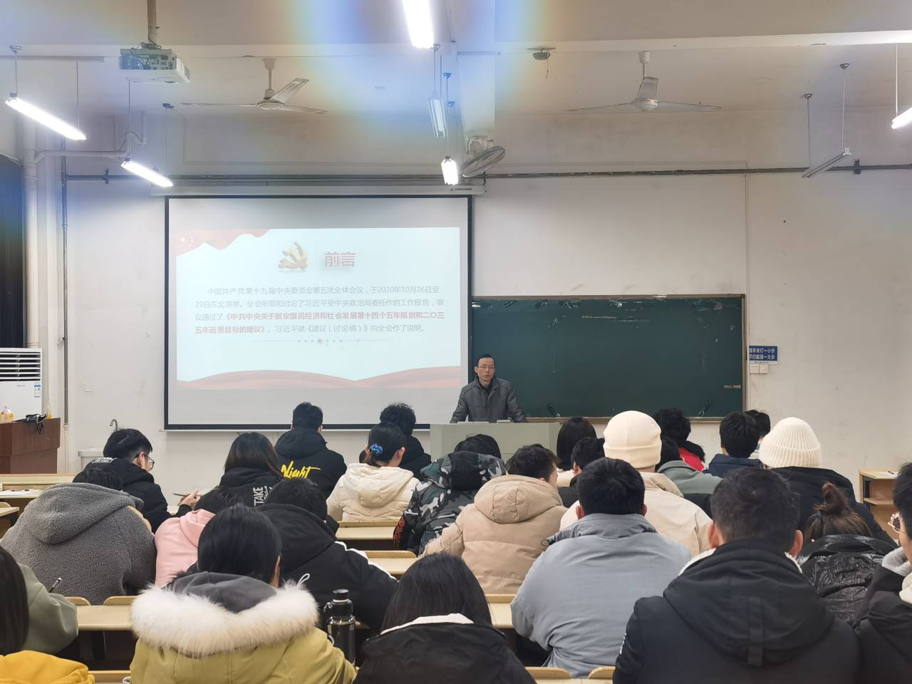 党委书记丁忠利在电气楼112,以《党的十九届五中全会精神解读》为题,为海角社区