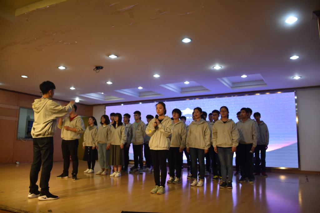 在本部老大活举行“E路欢声”班歌比赛。院党委副书记、副院长郭宏,院团委书记,各年级辅导员以及院团委学生会各部门负责人担任比赛评委。