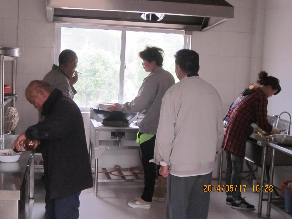 忙活了一上午,中午大家急急忙忙吃完饭就前往敬老院。到达目的地时,有的老人已在门外等候,看见学生们来便朝我们挥手,看见老人在门口迎接,同学们也高兴不已,心中那种与老人交流有隔阂的担忧也立即消失。之后,大家按照既定计划分工合作,有条不紊。女生在那里和看护阿姨一起洗菜,做饺馅,这边男生在分香蕉,切西瓜。大家边做事边和老人聊家常,时而笑声阵阵。饺馅做好后,大家便围在一起包饺子。来自不同地方的同学包的饺子也各式各样,有的带花边,有的像元宝,就连那里的阿姨也对多样的饺子产生好奇,当然,也有不会包当场学的,其余不会包的也就在一旁打下手。