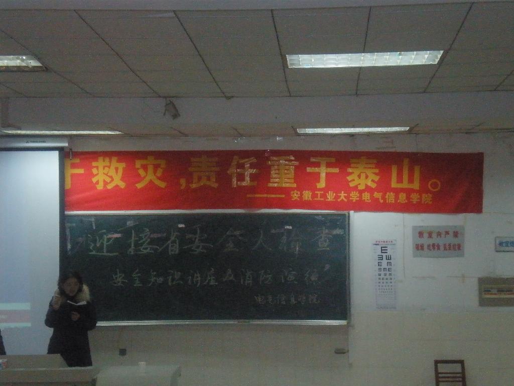 接着马鞍山消防支队汪工程师给同学们上了一堂生动的消防安全知识课。课堂上,汪工程师用生动的语言讲解了如何报火警、火灾的预防、火场自救及逃生方法等消防安全基本常识,并针对当前学校的消防安全工作形势和火灾特点,向学生讲解了用火、用电注意事项,强调一旦身边发生突发事件,要沉着应对,做好安全逃生工作,使同学们受益匪浅。讲座过程中,同学们都在专心倾听并认真做笔记,讲到相关话题时,积极参与讨论,踊跃发言,现场气氛十分活跃。
