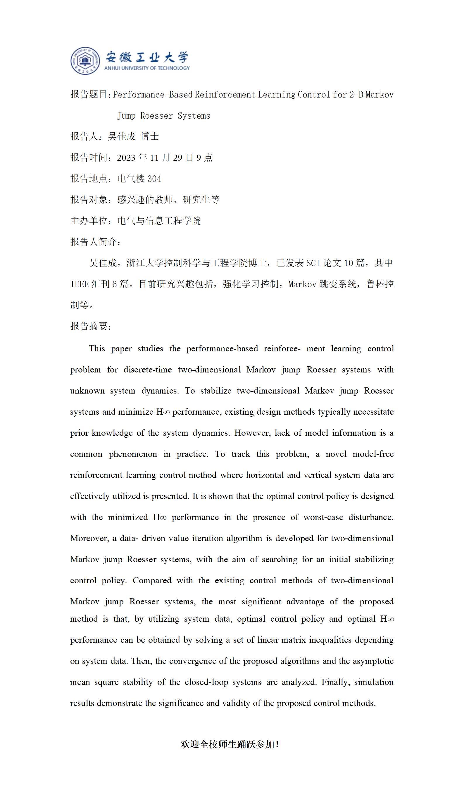 电气与信息工程学院”谦之“学术讲坛之五十四