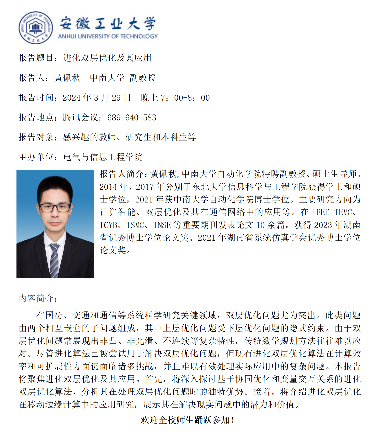 砺山学术报告之三十一-进化双层优化及其应用