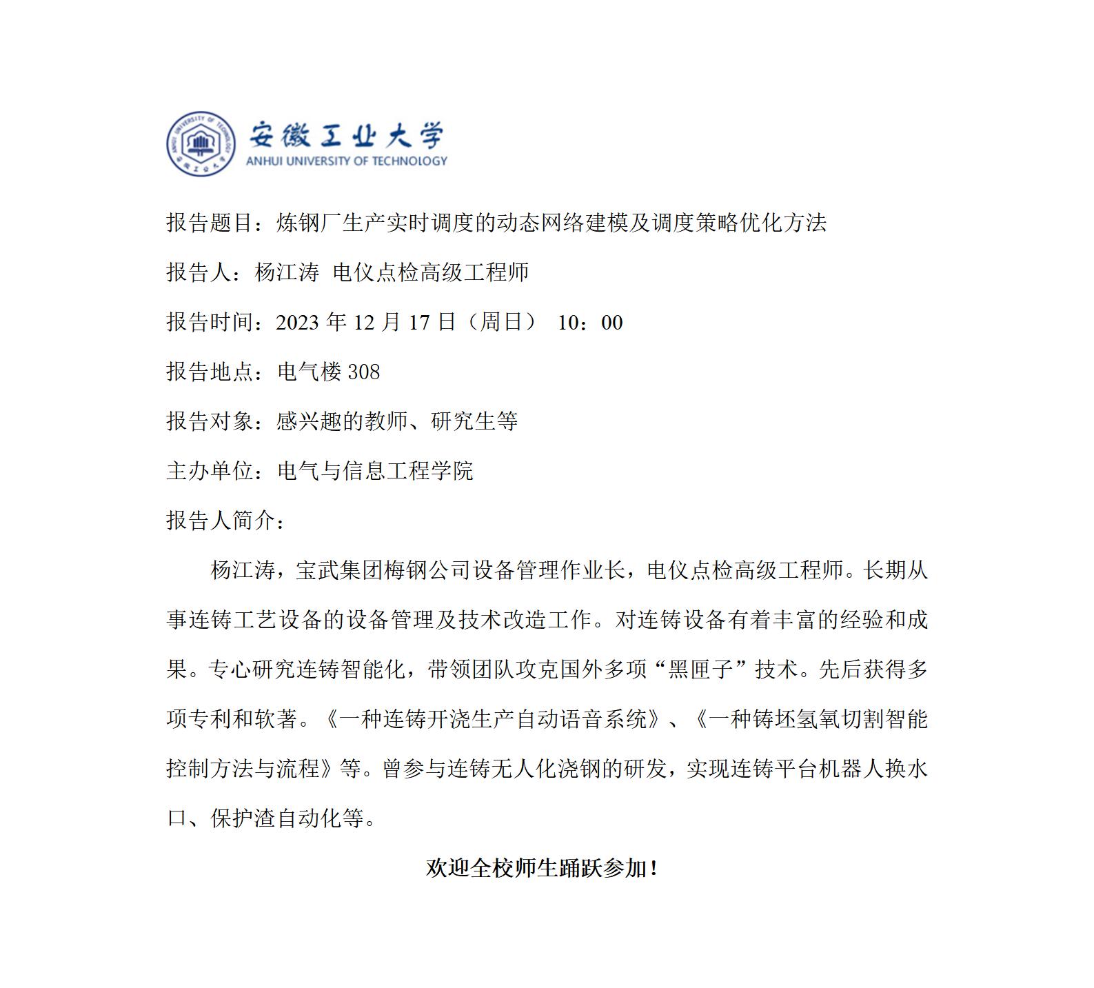 砺山学术报告之二十五-炼钢厂生产实时调度的动态网络建模及调度策略优化方法