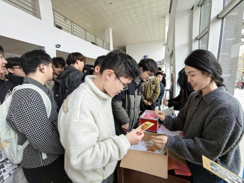 12月5日,学院心理部在电气楼大厅开展“研途秋韵书寄祝福”考研慰问活动。全体2022级辅导员及心理工作站老师一同到场,为正在紧张备考的学子加油鼓劲、缓解压力,并送上由老师和大一新生手工制作的“研途祝福书签”。